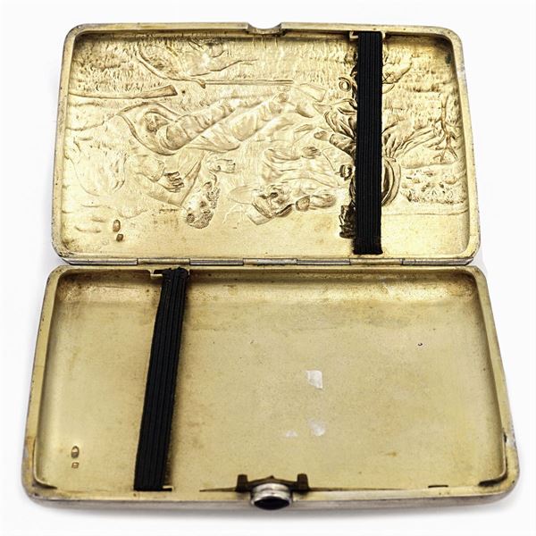 b) rectagular shape box, lid decorated with a Tzar, 11x8,5 cm., peso complessivo 437 gr.