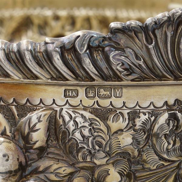 mark of Henry Atkin, oval body chiselled with floral patterns, 17,5x33x24 cm., peso 1208 gr.