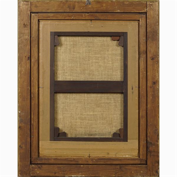 "Landscape with characters and architectures", within giltwood frame, 57x41 cm.