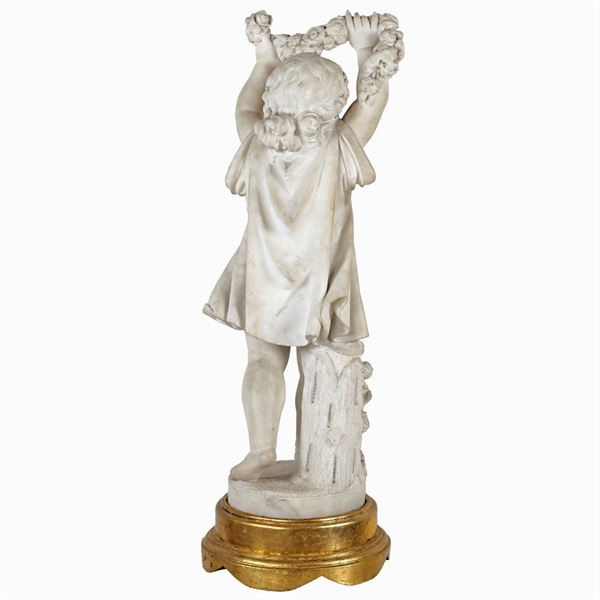 depicting "Girl with flower garlands", resting on a circular gilt wood frame, h. 76 cm.
