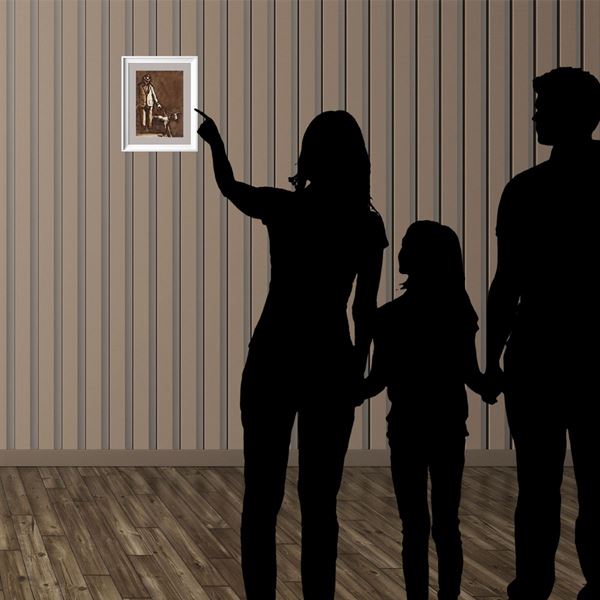"Uomo con cane", 1964, Indian ink and watercolor on paper, signed at the lower right, framed, 20,5x15 cm.
