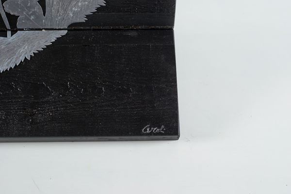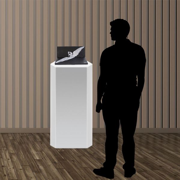 "L'Angelo vendicatore", wooden sculpture, es. VIII/XX, signed lower right. Artist's authentic on photograph, 18x45x20 cm.