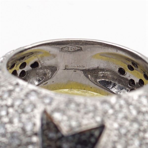 brilliant cut circa 3.50 ct and brilliant cut black diamonds, size 12.5, peso 17 gr.