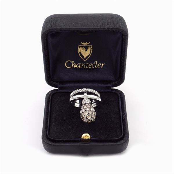 18kt white gold and brilliant cut and fancy brown diamonds circa 1.30 ct, signed inside the stem, size 13