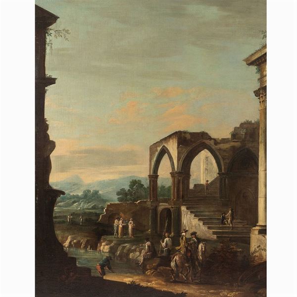 "Landscape with ruins" , oil on canvas, 118x153 cm.