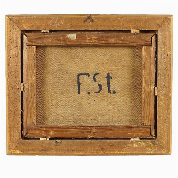 "Country landscape" , oil on canvas, traces of signature at the bottom right, within a wooden frame, 29x36 cm.