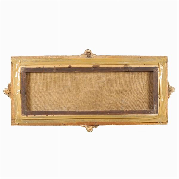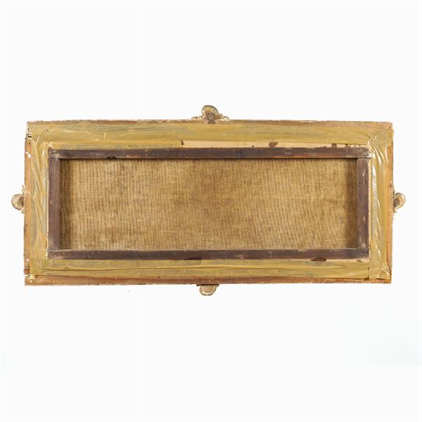 "Still life with cherubs - Bucolic scene" , pair of oils on canvas, within gilded wood frames, 37x97 cm.
