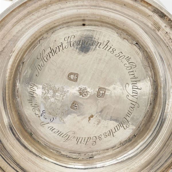 marks of Richard Gurney & Thomas Cook, plain body with knurled profiles, shaped line handle, weight 895 gr., h. 21 cm.