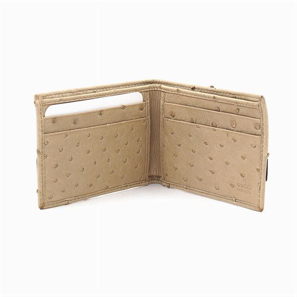 made of ostrich leather with steel bracket, complete with box, 7,5x10 cm.