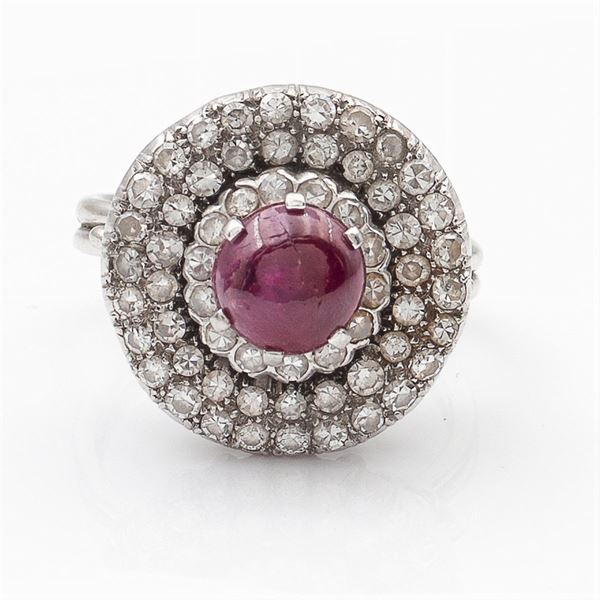 old mine brilliant cut circa 1 ct, size 16, the ruby has defects, peso 12 gr.