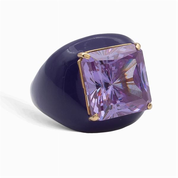centered by a carrè cut amethyst, slight defects, size 13.5, peso 20,4 gr.