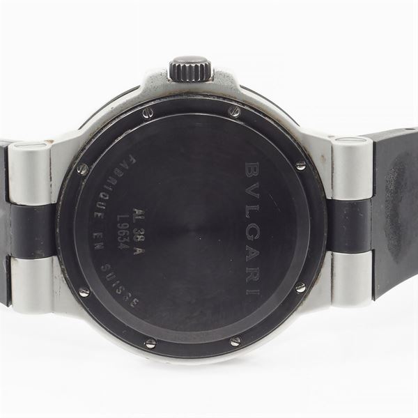 38 mm round aluminum case. ref. AL38A - L9634 silver dial with indexes and Arabic numerals, dated at 3 o'clock, sapphire crystal mechanical movement with automatic winding Eta 2890/2 - bezel and rubber strap with original aluminum buckle, signed case, dial and movement