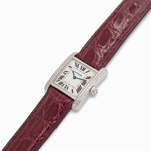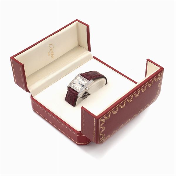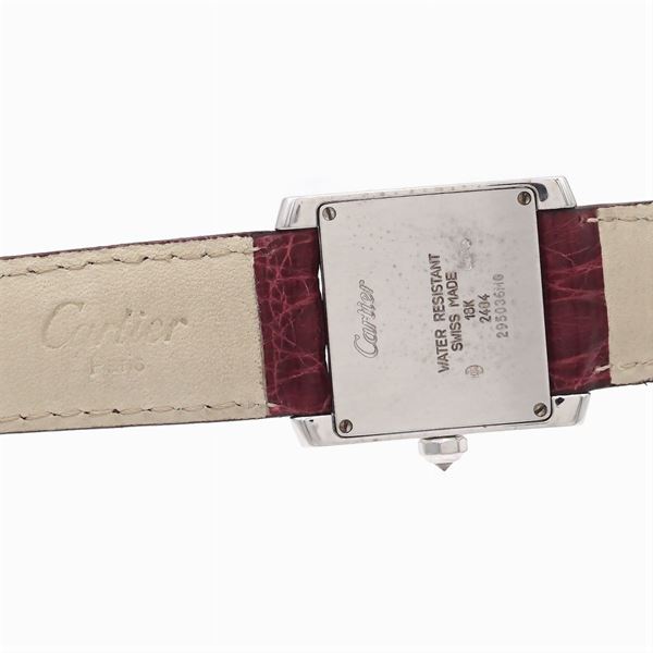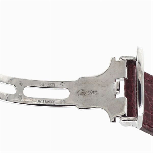 carré case 25x30 mm in 18kt white gold on the sides of brilliant cut diamonds circa 0.90 ct ref. 2404 - 295036MG white dial with Roman numerals, crown with diamond, sapphire crystal, quartz movement, original strap with 18kt white gold folding clasp, signed case, dial and movement