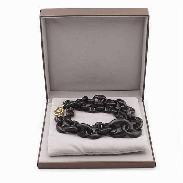 made with ebony links and 18kt yellow gold stirrup clasp, signed on the back