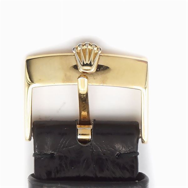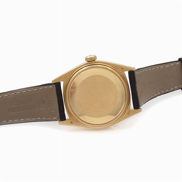 18kt yellow gold 35.5 mm. case, ref. 1807 - 5083206 black dial with golden indexes, dated at 3 o'clock, days of the week at 12 o'clock, bark bezel, mechanical movement with self-winding, caliber 1556, leather strap with gold-plated buckle, signed case, dial and movement, .