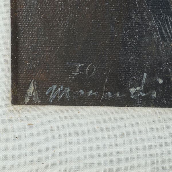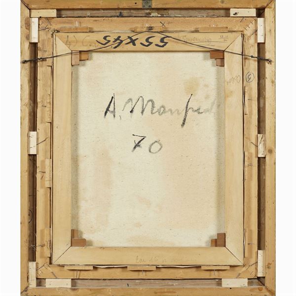 " Senza titolo", 1970, olio su tela, firmato e datato in basso a sinistra e sul retro, entro cornice, 55x45 cm.