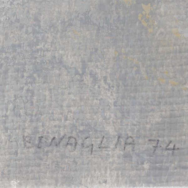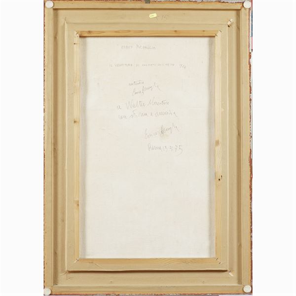 "The toy soldiers seller" , 1974, oil on canvas, signed and dated at the lower left, framed, 82x54 cm.