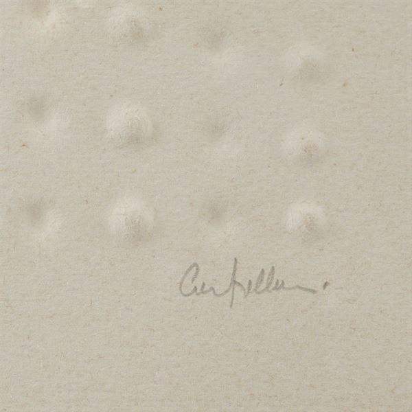 "White surface" , 1969, dry impression ex. VII / XXXIII, signed in pencil on the lower right and numbered on the lower left, dry stamp publisher il Nuovo Torcoliere, Roma at the lower right, framed.