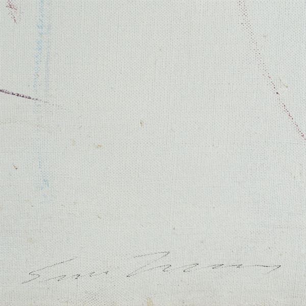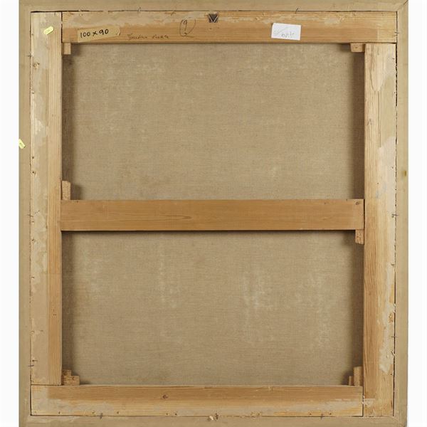 "Giardino d'estate" , circa 1980, oil on canvas, signed at the lower right, framed, 100x90 cm.