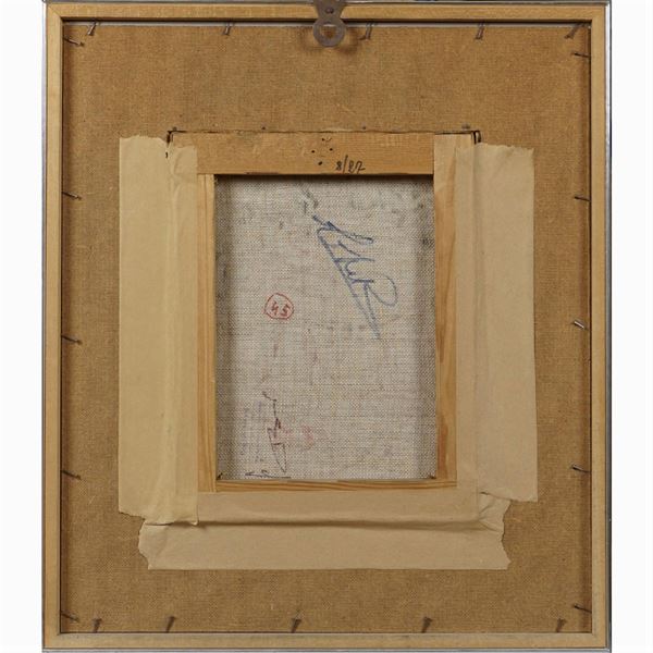 "Figure", 1970s, mixed technique on paper applied to canvas, signed at the lower right, framed, 22x28 cm.