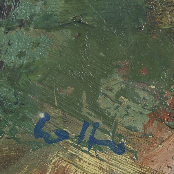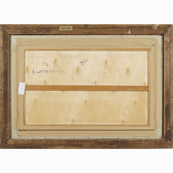 "Caffarella", circa 1987, oil on panel, signed at the lower right, framed, 50,5x81 cm.