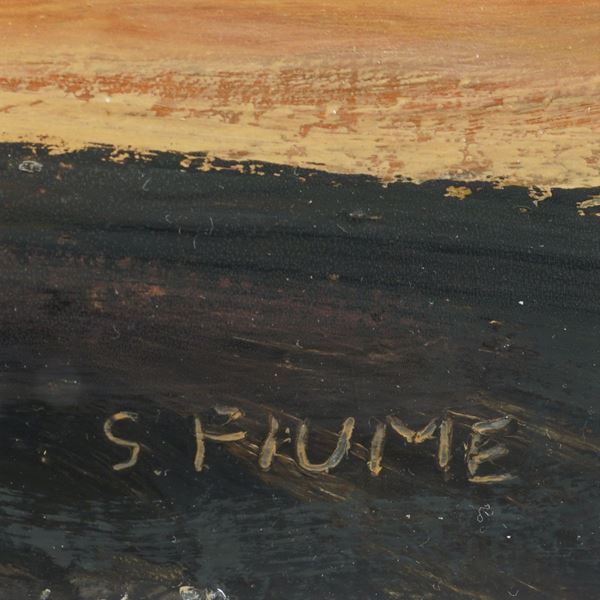 "Island of stones", 1970s, oil on masonite, signed at the lower right, framed. Authentication of the artist on photograph, 55x36 cm.