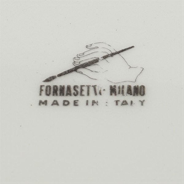 vase with lid in ceramic decorated with serigraphy, brand under the base, 30x18 cm.