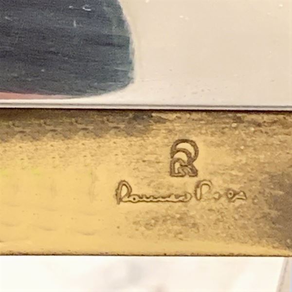 steel, brass and fumè glass wall console, manufacturer's mark, 76x142x45 cm.