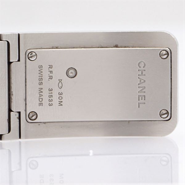in steel, rectangular 38.1 x21.5 mm. case R.F.R. 31533, two black lacquered dials, one without indexes and one with a princess cut diamond, bezel with brilliant cut diamonds circa 0.58 ct, quartz movement, original steel bracelet with Mademoiselle clasp, signed case, dial and movement