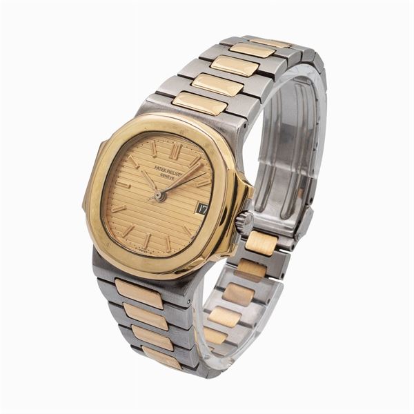 in steel and 18kt yellow gold, ref. 3800/I - 37 mm. cushion case, golden dial, date display at 3 o'clock, sapphire crystal, mechanical movement with automatic winding