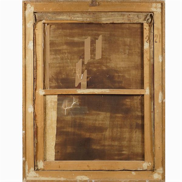 134x102 cm."Immaculate Conception", oil on canvas, within a gilded wood frame, defects