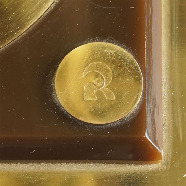 h. 45 cm.gilded metal and resin table lamp, production mark