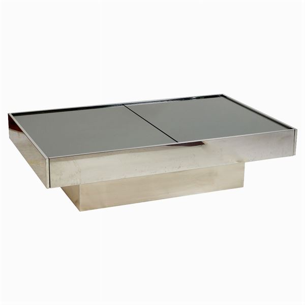 36x130x80 cm.bar table in steel and brushed steel, mirrored glass and perspex, slight defects