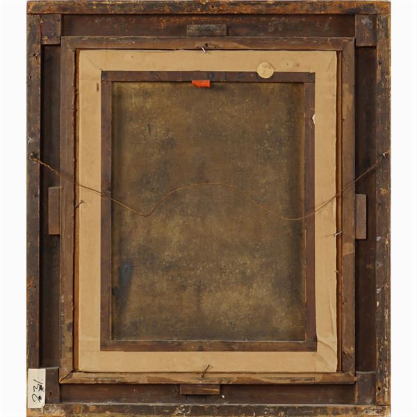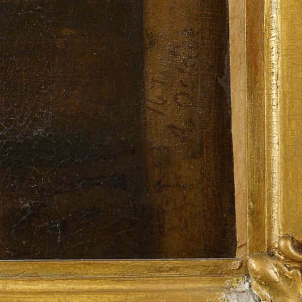 61x49 cm."Musicians outside the tavern", oil on canvas, signed and dated 1671 at the lower right, within a gilded wood frame