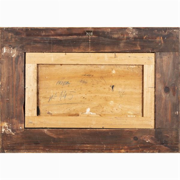 19x38.5 cm."View of the Gulf of Naples with Castel dell'Ovo", oil on panel, signed at the lower right, framed