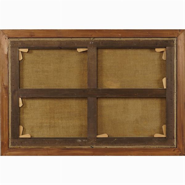 78x120 cm."Landscape with genre scene", oil on canvas, within gilded wood frame