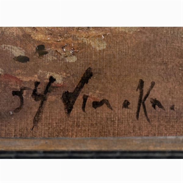 50x30 cm."Fratellini sulla spiaggia", oil on canvas, signed at the lower right, framed