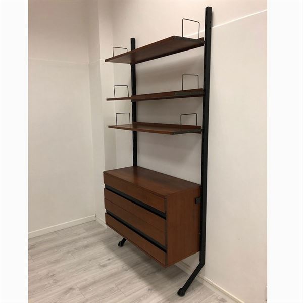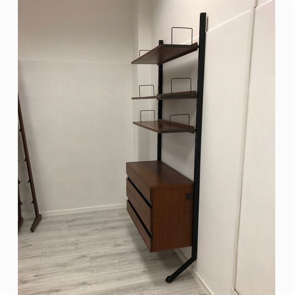 220x100x42 cm.modular bookcase in wood, painted iron and brass