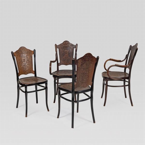 sofa 100x117x48 cm.sofa, four chairs and two armchairs in wood, production marks and labels