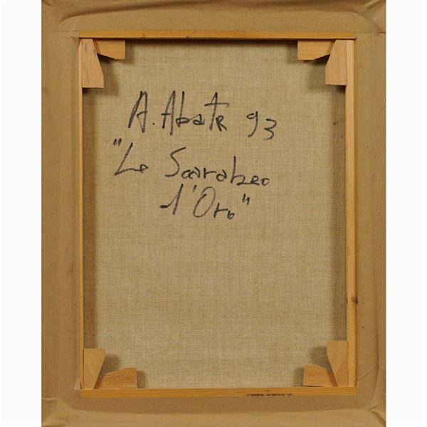 73,5x60 cm."Lo scarabeo d'oro", 1993, oil on canvas, signed, dated and titled on the reverse, framed
