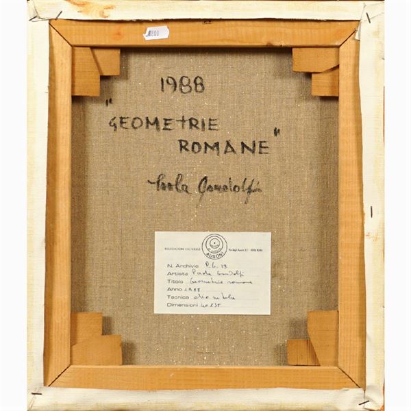 "Geometrie romane", 1988, oil on canvas, signed, dated and titled on the back, framed