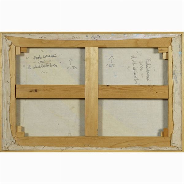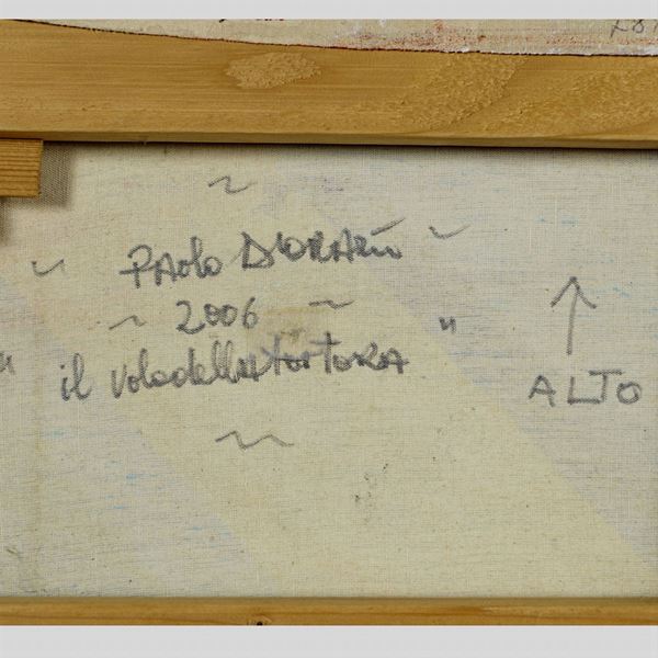 "Il volo della tortora", 2006, mixed technique on canvas, signed and dated on the back, framed