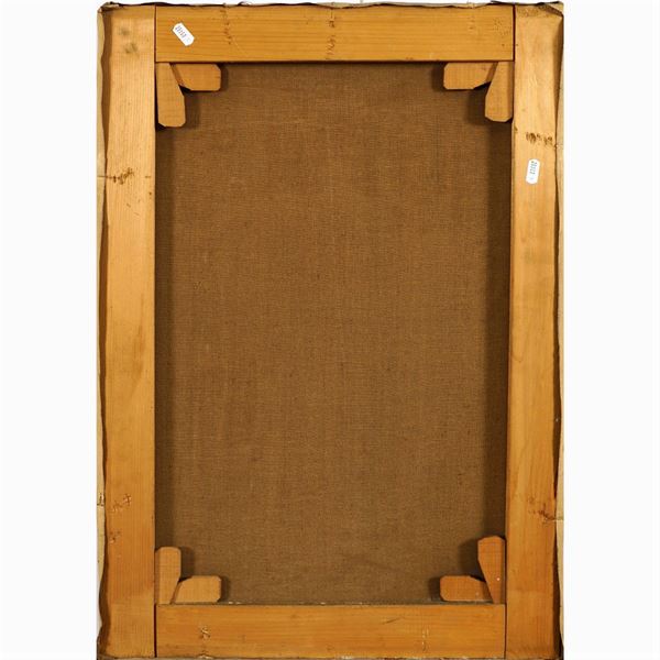 70x50 cm."Le lavandaie", oil on canvas, signed lower right, framed