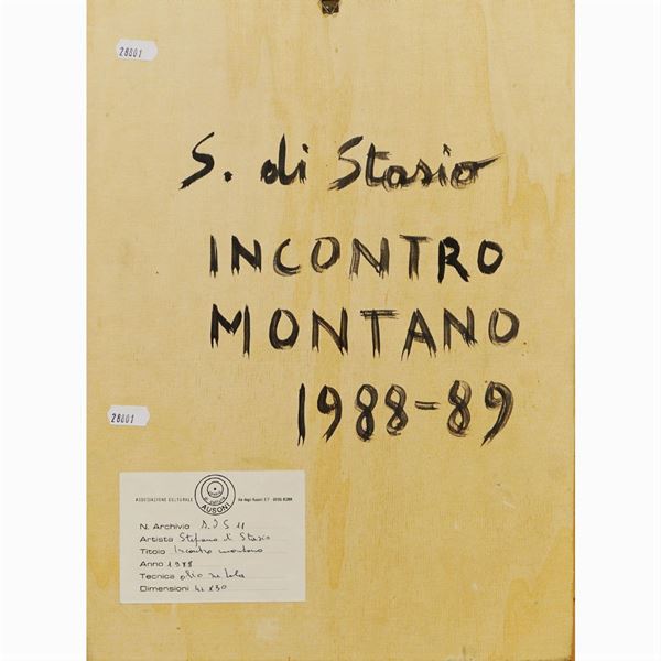 "Incontro montano", 1988, oil on panel, signed, dated and titled on the back, framed