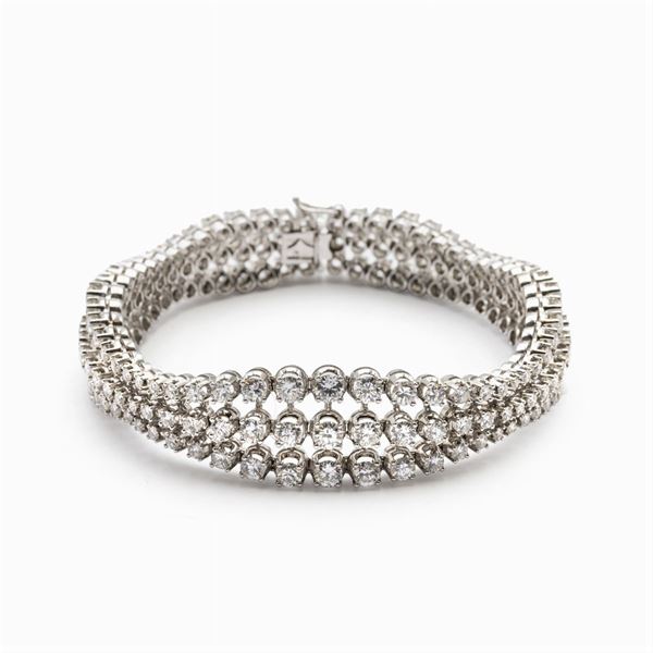 weight 35 gr.brilliant cut circa 13 ct arranged in gradation to form three rivière, length 18.5 cm.