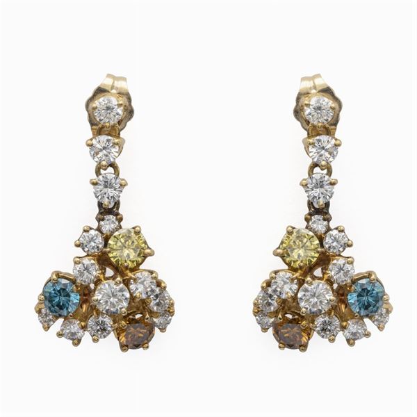 brilliant cut diamonds circa 4 ct, comprising a ring size 19.5 and pendant earrings 2 cm