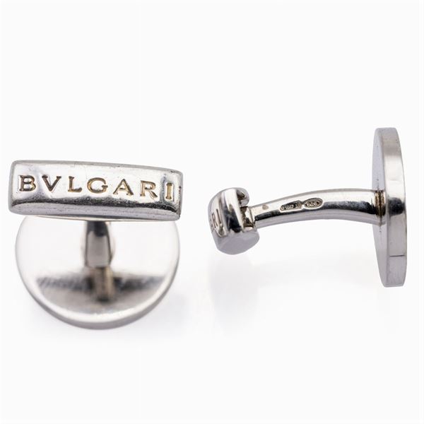 Bulgari, round silver and blue guilloché enamel cufflinks