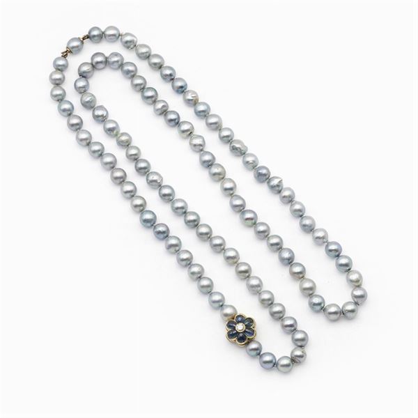 Long strand of cultured gray pearls necklace
