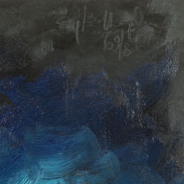 100x100 cm."Verso nuovi mondi (n.2)", 1969. mixed technique on panel, signed and dated upper right, framed