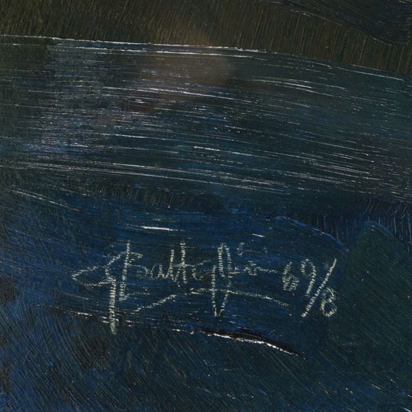 100x100 cm."Verso nuovi mondi (n.1)", 1969, mixed technique on panel, signed and dated lower left, framed